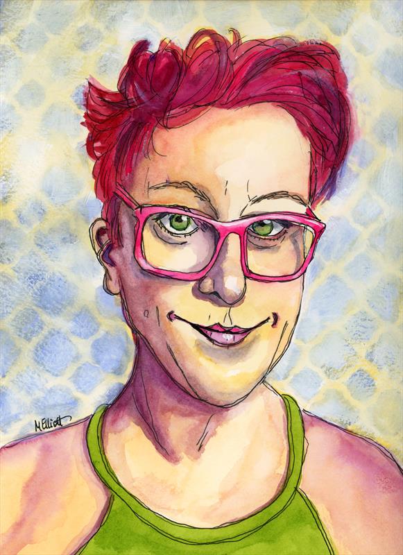 Emma's New Hair 9x12, Uniball pen, watercolor, stencil, gesso,  $NFS by: Melissa Elliott Entry ID: 508535