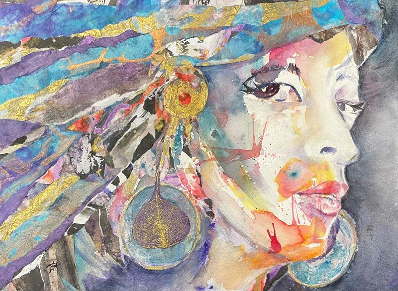 That Gaze 16x20, Watercolor with Collage,  $NFS by: Donna Miller Haggerty Entry ID: 508773