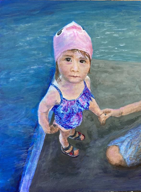 First Swim Lesson 9x12, Acrylic,  $sold by: Yami Boyle Entry ID: 558753
