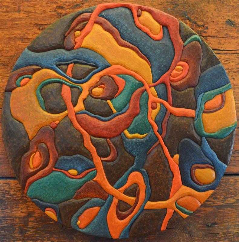 Interconnected 18x18, relief basswood carving, gouache paint,  $ by: Rachel Lamb Entry ID: 560403
