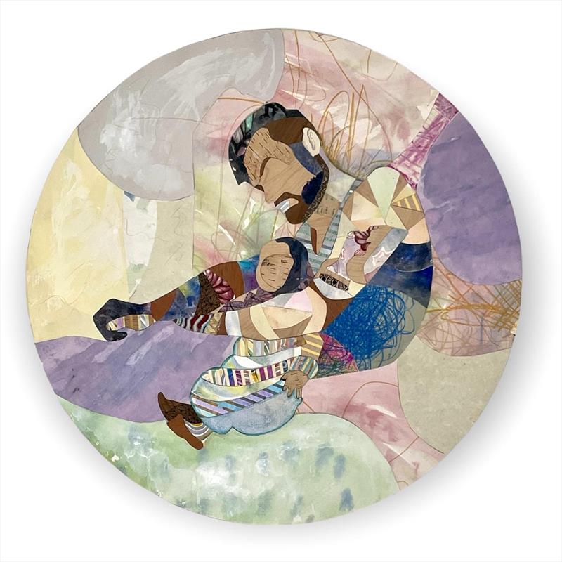 Fatherhood 24x24, Collage of drawing/painting/wood veneer,  $1000 by: Shelley Smolen Entry ID: 558010