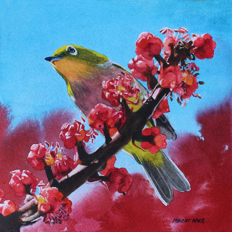White Eye in Schefflera 8x8, Watercolor,  $750 by: Marilyn Wear Entry ID: 580369