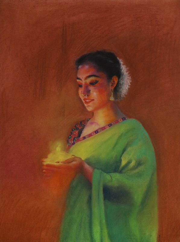 Light on Her Face 30x22, Soft Pastel,  $900 by: Amely Debnath Entry ID: 571016