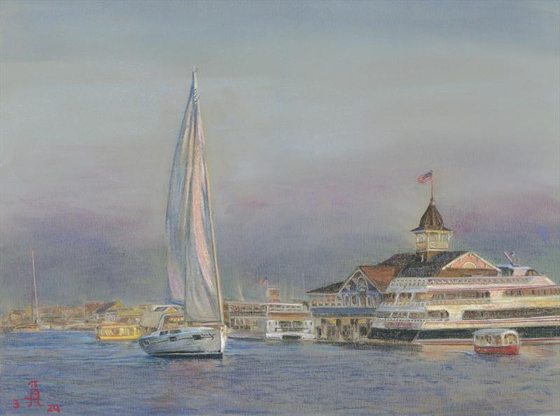 Sailboat on Newport Bay by the Balboa Pavilion 12x16, Soft Pastel,  $NFS by: April Hoskins Entry ID: 571663