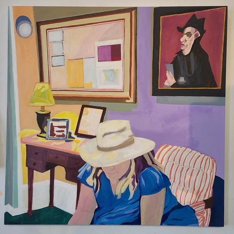 On the Phone 40x40, Acrylic on Canvas,  by: Nan Hockenbury Entry ID: 575276