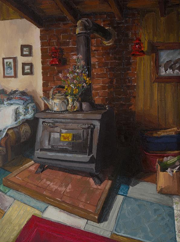 Cabin Wood Stove - An Enduring Centerpiece 12x16, oil on canvas,  $2500 by: Amanda Oakleaf Entry ID: 575280