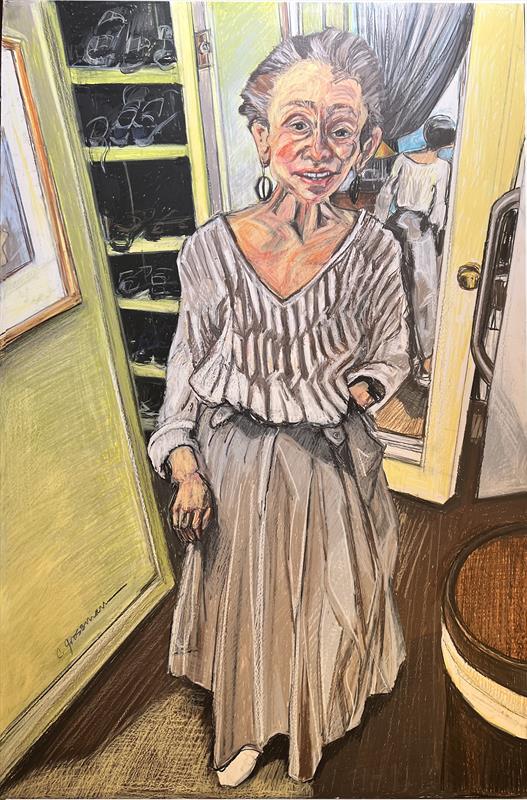 The Dress Rehearsal (Portrait of Alberta N Grossman) 36x24, Caran d'Ache water-soluble crayons on Clapbord pan,  $1750 by: caroline grossman Entry ID: 575779