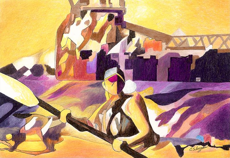 Kayaker and Freighter 16x20, Ink and Colored Pencil,  $460 by: Charles Schroeder Entry ID: 575475