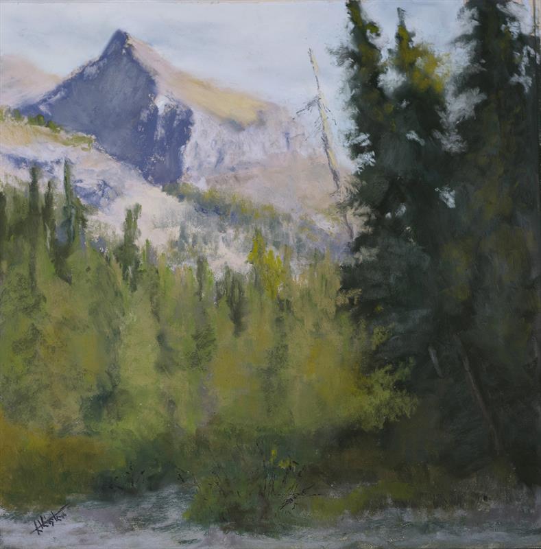 Late Afternoon in the Middle Fork 12x12, Soft Pastel,  $600 by: Katherine Heister Entry ID: 575103