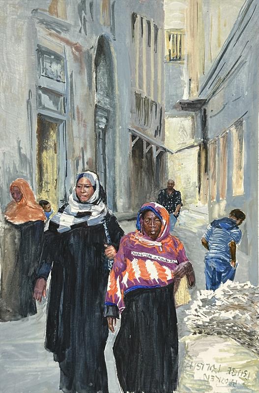 Marketing Day in Zanzibar 23 x 17, Gouache and Egg Tempra,  $960 by: Leslie Hamilton Entry ID: 585869