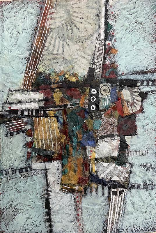 Clusterscape 11: Amalgamation 9x6, Tissue collage, pen and ink, acrylic paint on arch,  $450 by: Susanna Rakusin Entry ID: 583090