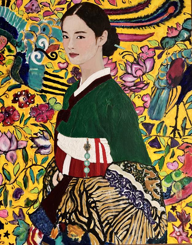 Woman in Hanbok 30x24, Acrylic,  $1200 by: Haelyn Y Entry ID: 579043