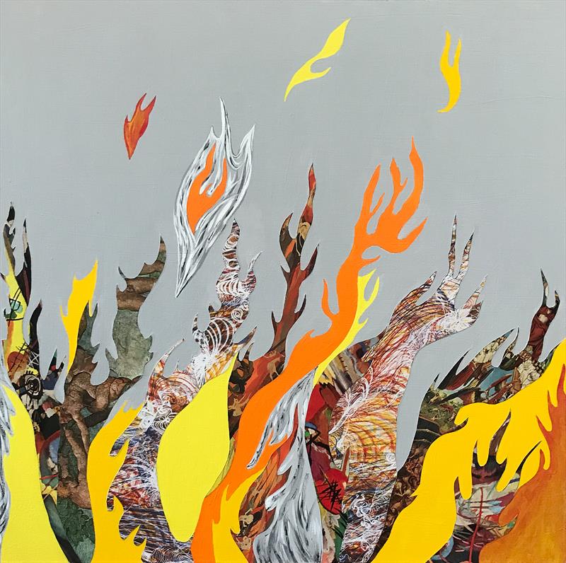 Spark 16x16, acrylic and collage on panel,  $500 by: Nancy Goodman Lawrence Entry ID: 583889