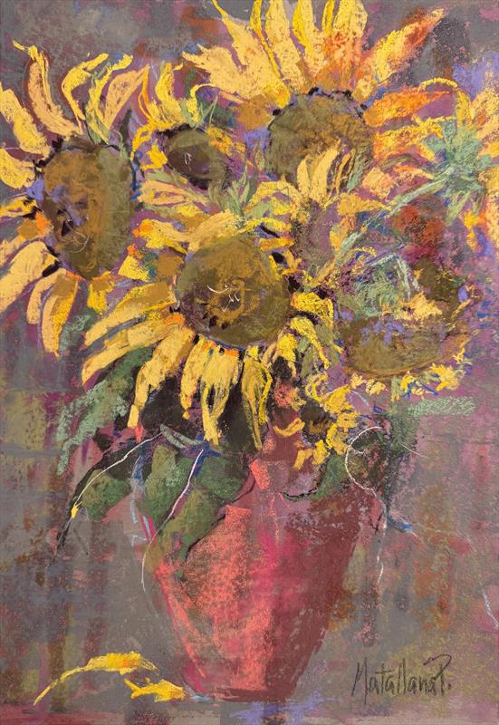 Sunflowers with Pink 15x10, Pastel,  $NFS by: Penelope Matallana Entry ID: 582162