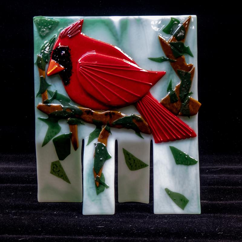 Red Bird 8x8, Kiln (Fused) Glass,  $150 by: Marcy Stinton Entry ID: 584278
