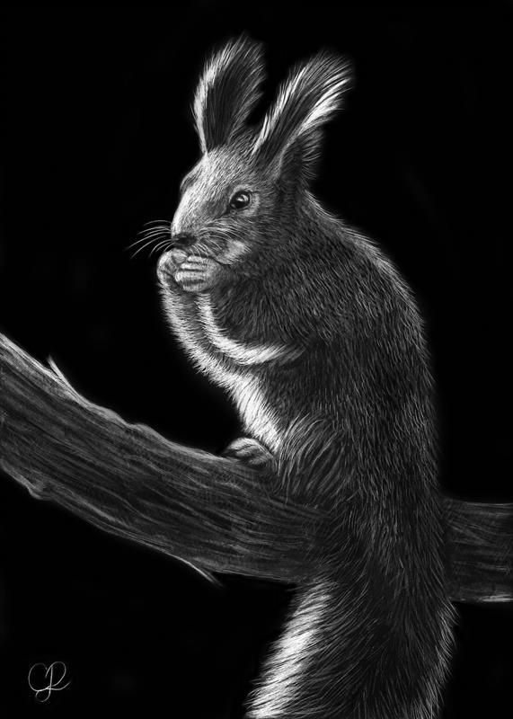Squirrel 06 5x7, Scratchboard,  $200 by: Chelsea Paulus Entry ID: 584317