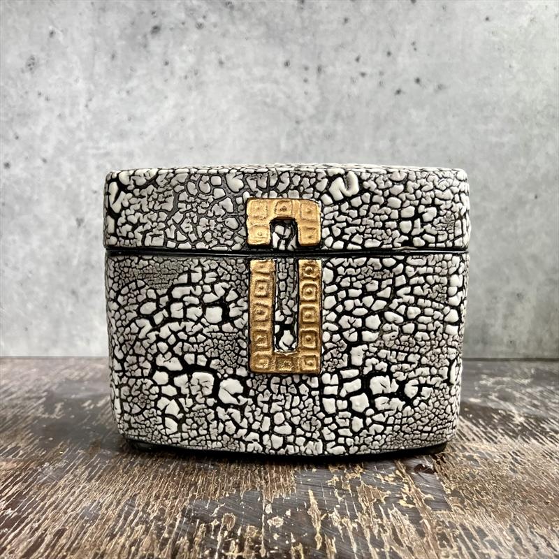 White Crackle Keepsake Box 6x7.5x5, porcelain clay,  $260 by: Pierre Bounaud Entry ID: 584407