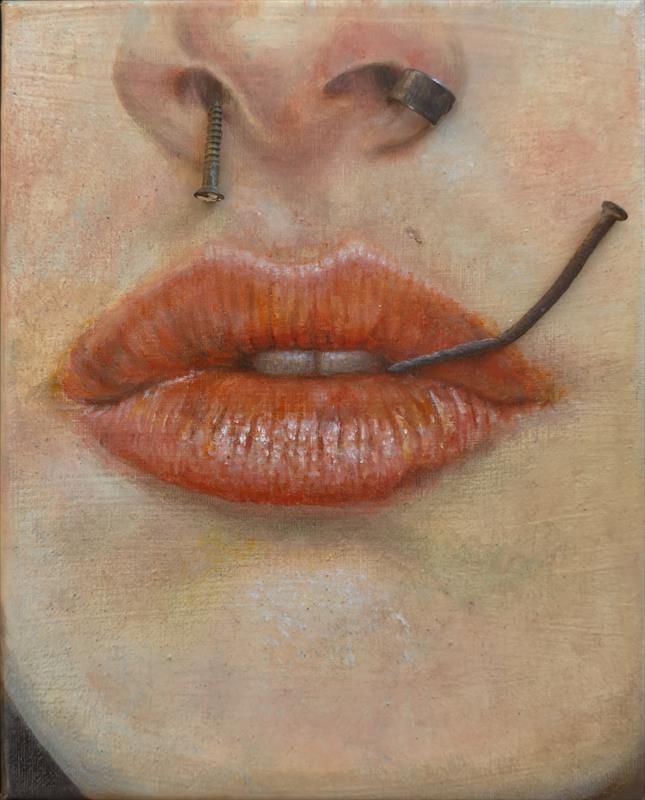 The Weight of What Cannot Be Said 10"x8"x1", Oil on Canvas with Metal Found Objects,  $500 by: Ana Maria Herrera 1st Place Entry ID: 584531
