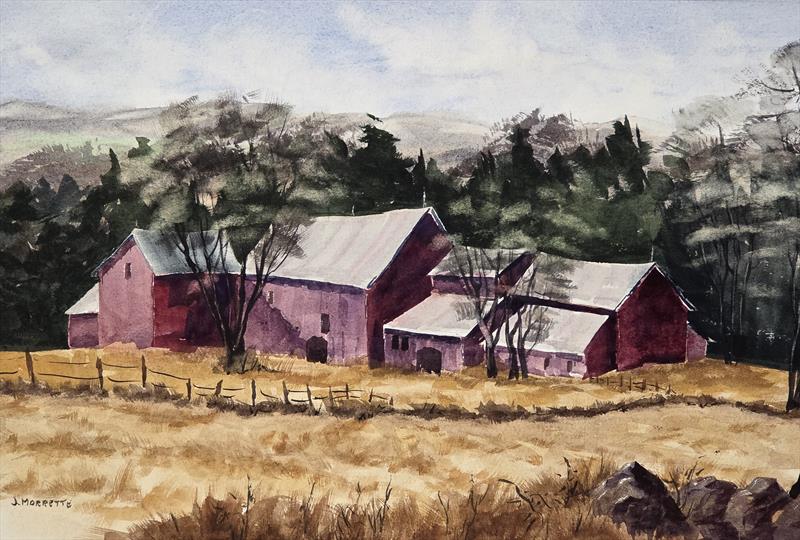 4 Red Barns x, Watercolor,  $400 by: John Morrette Entry ID: 583460