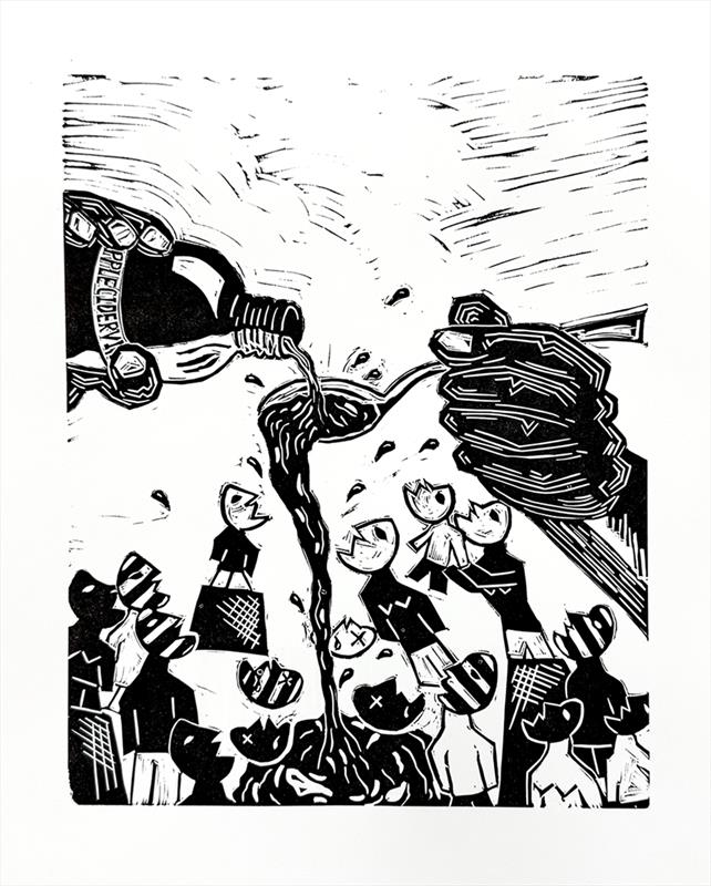 Panacea 12x10, Linocut on paper,  $650 by: Maya Lakshmi Srinivasan Entry ID: 584191