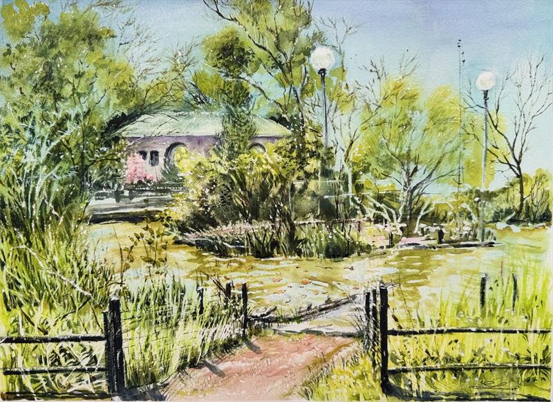 Humboldt Park Boathouse 9x12, Watercolor,  $400 by: Laura Camunas Entry ID: 582602