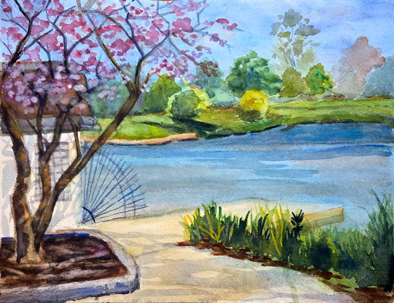 Under the Cherry Blossoms: Humboldt Park 9x12, Watercolor,  $350 by: Jill Zylke Entry ID: 582706
