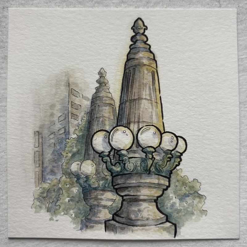 Riverwalk Light Pole 4x4, Watercolor and ink on paper,  $95 by: Kaisa Holmstrom Uchida Entry ID: 582762