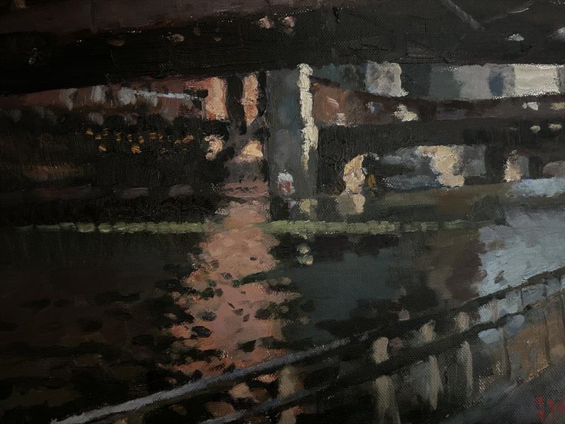 October Light at the Riverwalk 9x12, Oil,  $500 by: Hugh Nicholson Entry ID: 582910