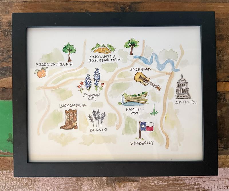 Austin Hill Country Landscape 8x10, Watercolor & Pen + Photoshop,  $185 by: Tricia Ulberg Entry ID: 585117