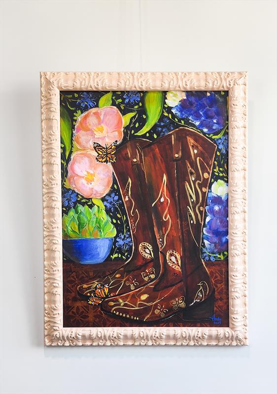 The brown boots 32x24, Acrylic on paper,  $550 by: Hada Perez Entry ID: 585442