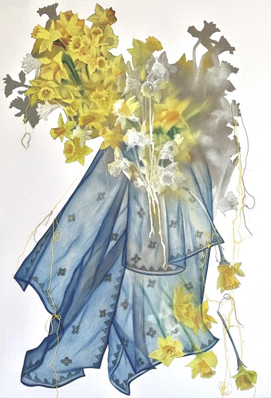 Where Shape Lingers 24x36, Soft pastel, Acrylic and Thread ,  $3650 by: Nahid Davarpanah First Place Entry ID: 587700
