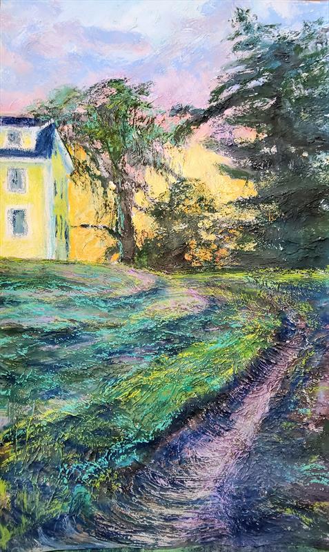 Sunset on Ruts 23x14, Soft pastel, acrylic paint, modeling paste on pape,  $NFS by: Bridie Wolejko Entry ID: 587712