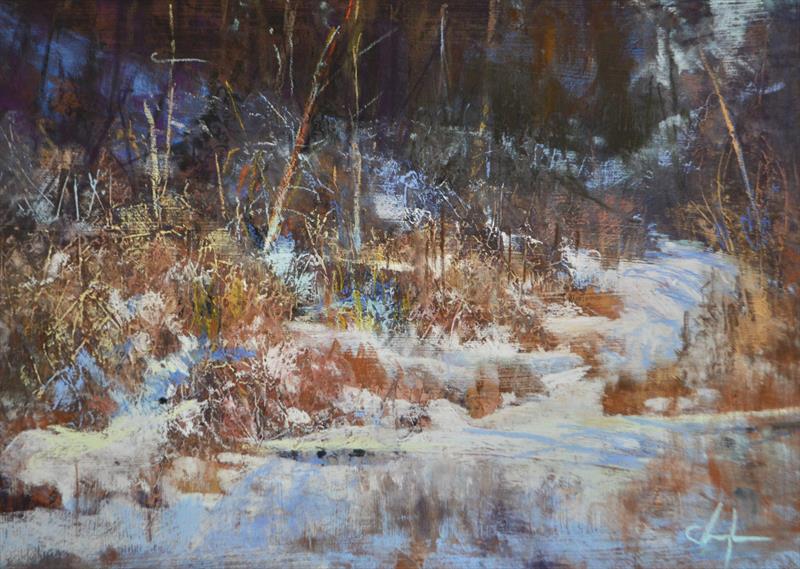 Winter Bluffs 22x28, soft pastels , semi gloss house paint. acrylic ar,  $3000 by: Tom Christopher Entry ID: 587754