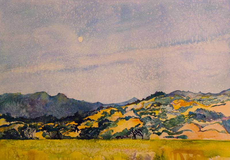 Santa Inez Valley in the moonlight 13x19, Watercolor,  $$1500 by: Lynn Gadal Entry ID: 589845