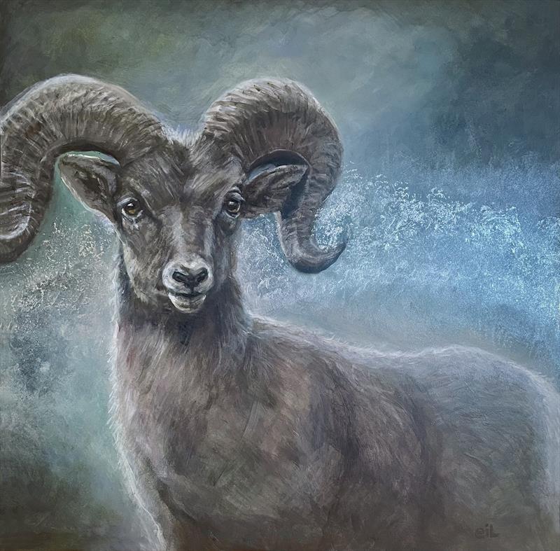 A Lone Bighorn: Endurance on the Edge 12x12, Acrylic,  $850.00 by: Ellen Levine Entry ID: 589991