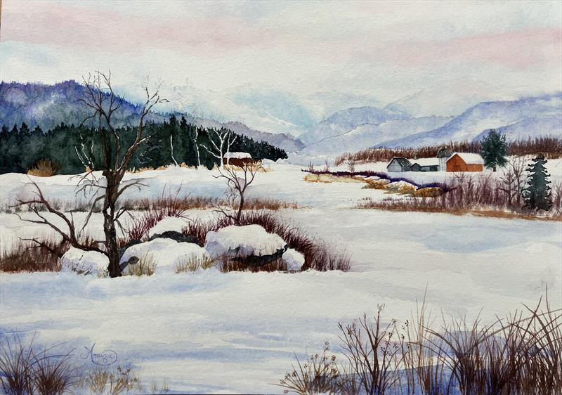 Fresh Snowfall 9x1, watercolor,  $450.00 by: Monique Dewyea Entry ID: 591280