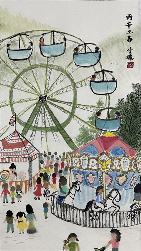 Ride Into Hapiness 15.3x8.8, ink, color and paper,  $100 by: Yi Ying Tang Entry ID: 592968