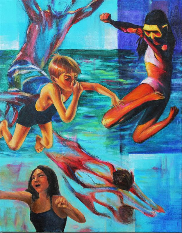 Shots of Summer 16x20x1.5, Acrylic Paint, Oil Pastel,  $125 by: Isabella Oh Entry ID: 593068