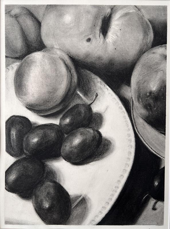 A Gray platter 14.5x12x0.5, Charcoal on paper,  $120 by: Hayan Kim Entry ID: 593092