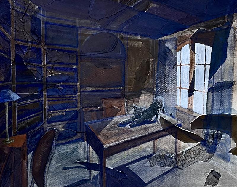 In an Empty Mind 12x15, Gouache, colored pencil, colored papers, newspaper,  $1,000 by: Seojin Hwang Entry ID: 593163