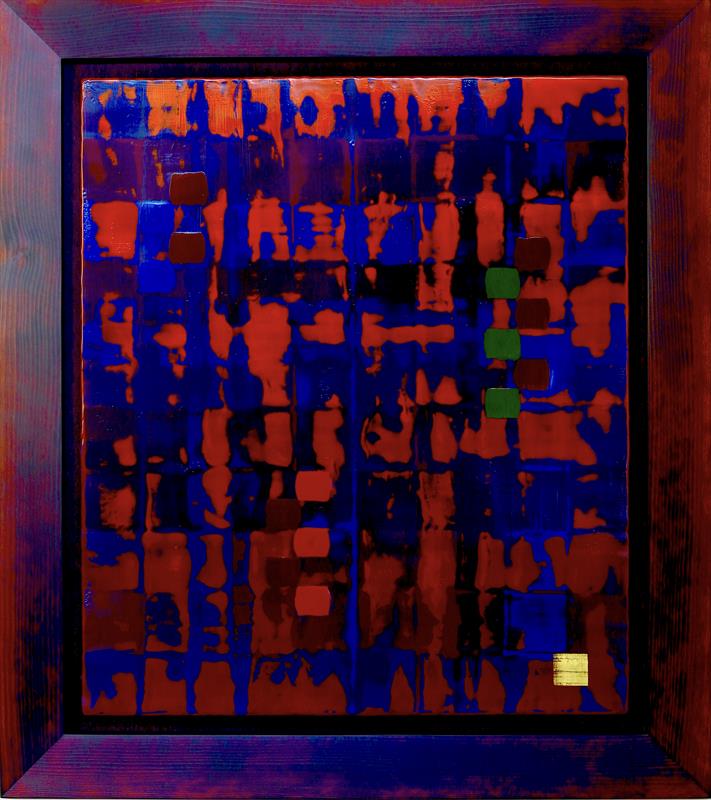 The Lapis Effect 26x22x1, Encaustic and gold leaf on panel with dyed fir fr,  $1500 by: Chris Kelly Entry ID: 593258