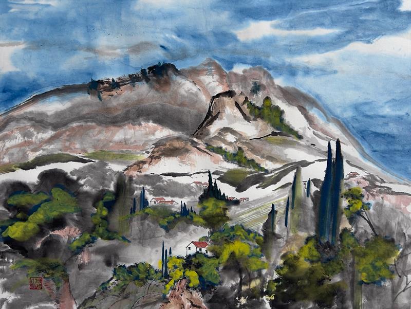 Cezanne's Mountain 17x22, Chinese ink and pigment on xuan paper ,  $750 by: Gail Threinen Entry ID: 592986