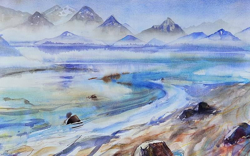 An Alaskan Seashore 14x21, Watercolor,  $990 by: patricia molina Entry ID: 594086