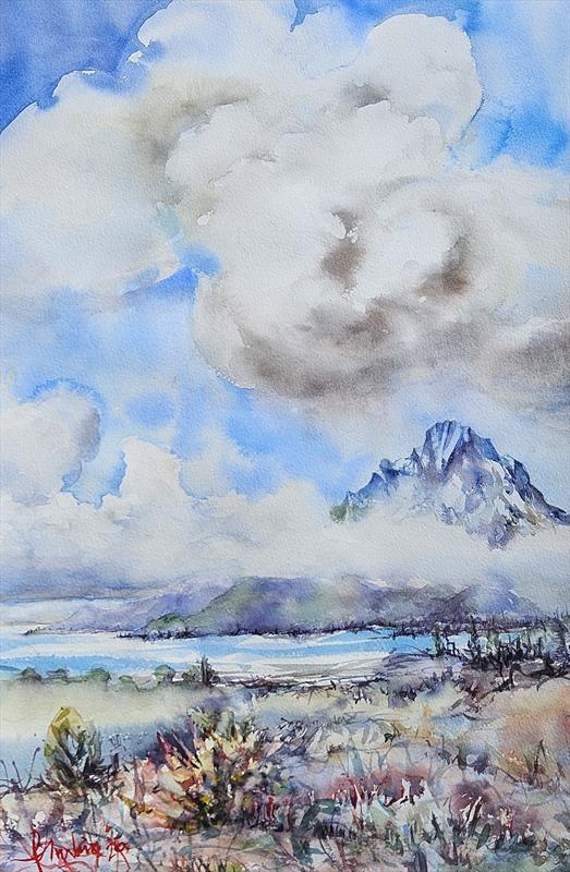 Majestic Teton 22x15, Watercolor,  $850 by: patricia molina Entry ID: 594088