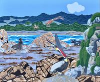 Ink and acrylic on paper.