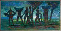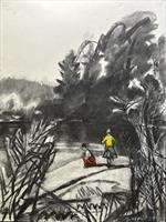 oil charcoal, oil stick on linen