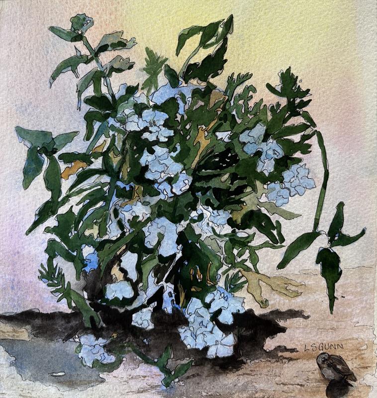 My Blue Flowers 8x8, Mixed Media,  $250 by: Linda Gunn Entry ID: 578488