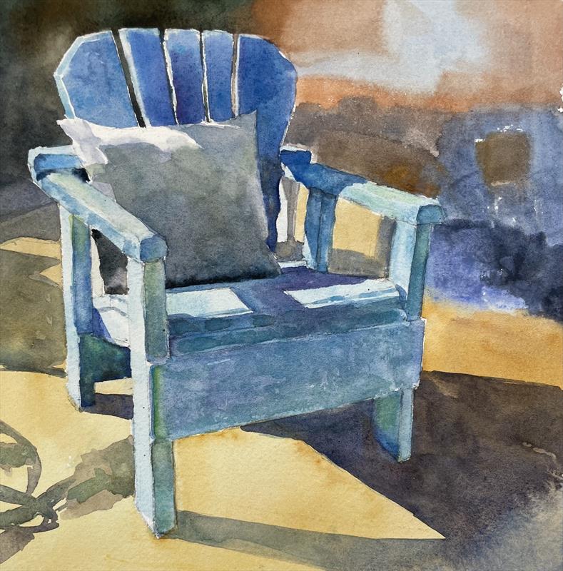 Barbara's Blue Chair 8x8, Watercolor,  $500 by: Carmen Daugherty Entry ID: 580380