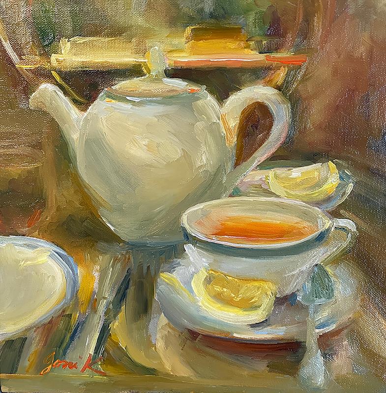 High Tea at The Plaza 8x8, Oil,  $750 by: Joni Kornweiss Entry ID: 580568