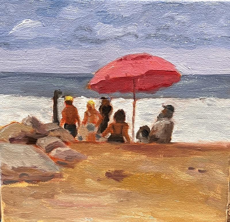 Summer Day at Doheny Beach 8x8, Oil,  $350.00 by: Charles Hinckley Entry ID: 580604